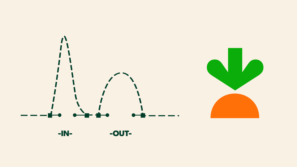 We use a custom speed graph whenever the Carrot Click version of the logo animation is introduced. The IN point begins with an increasing speed accelerating, followed by a decreasing speed decelerating into an Easy Ease OUT point. The IN & OUT keyframes are spaced 6 frames apart from the midpoint of the animation.